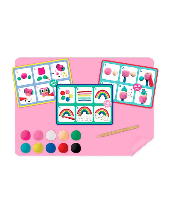 Αφήστε τη φαντασία στα ύψη με το σετ Floss & Rock Clay & Play – Rainbow Fairy ! Αυτό το μαγευτικό κιτ έρχεται με 10 ζωντανά χρώματα από πηλό, 10 κάρτες ιδεών χαρακτήρων με θέμα το ουράνιο τόξο και ένα επαναχρησιμοποιήσιμο χαλάκι δραστηριότητας σιλικόνης για να διατηρείτε τη χειροτεχνία χωρίς προβλήματα. Τα παιδιά μπορούν να ακολουθήσουν τους οδηγούς για να σμιλέψουν ιδιότροπες νεράιδες, αστραφτερά ουράνια τόξα και μαγικά πλάσματα ή να ονειρεύονται τα δικά τους φανταστικά σχέδια. Ο μαλακός, εύκολος στη χύτευση πηλός είναι ιδανικός για μικρά χεράκια, ενθαρρύνοντας την ανάπτυξη των λεπτών κινητικών δεξιοτήτων και το δημιουργικό παιχνίδι.