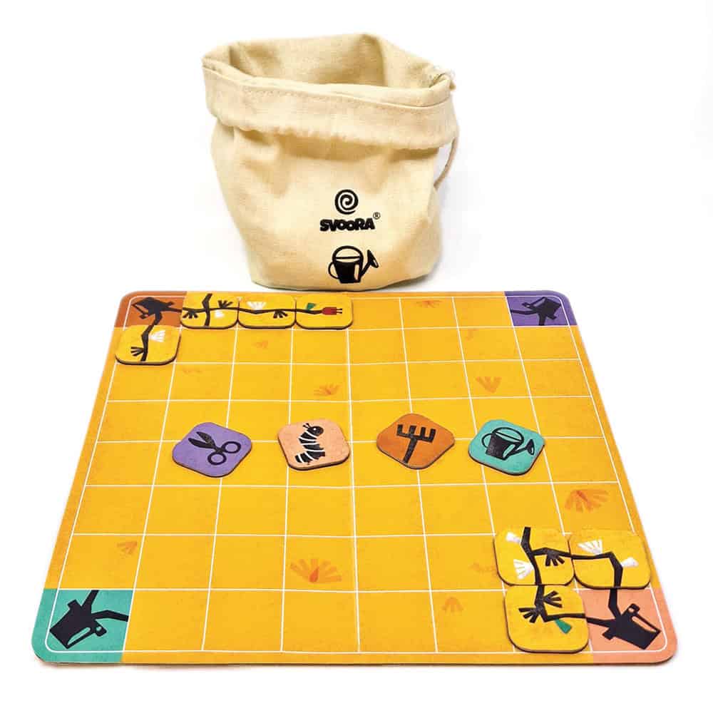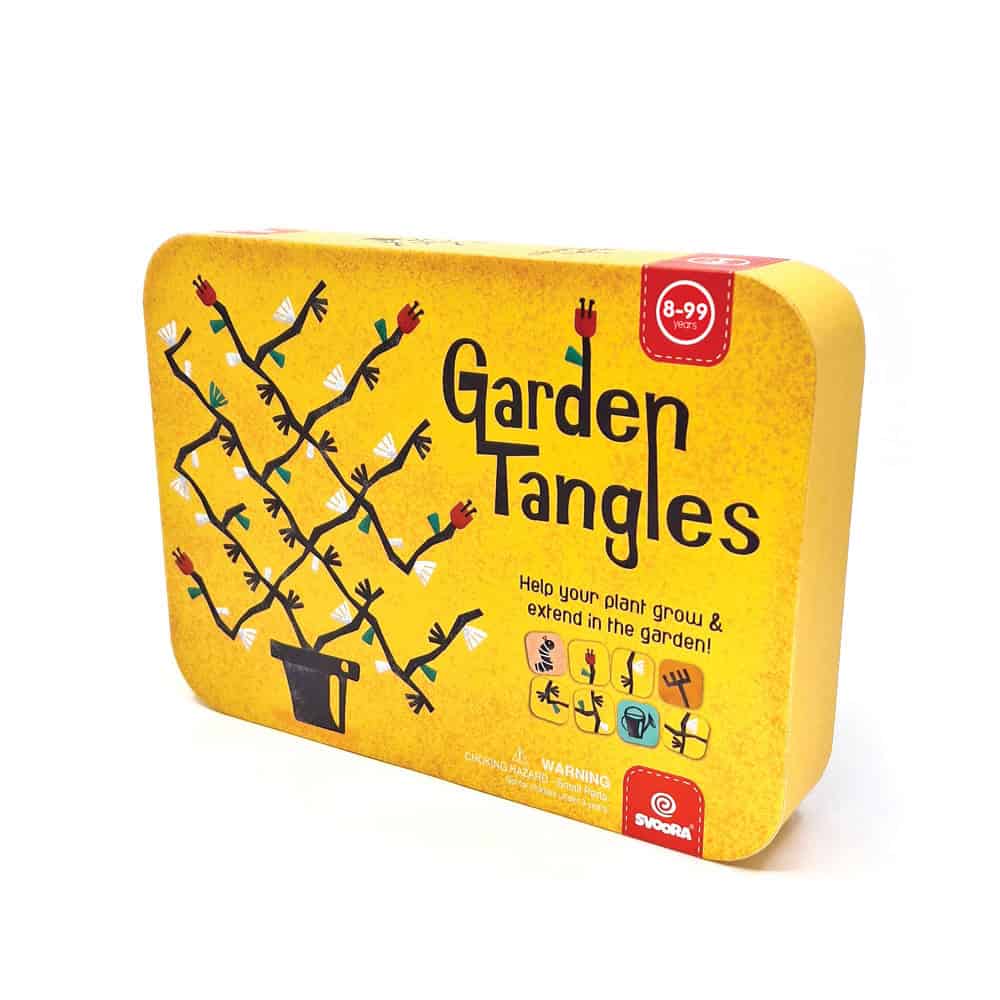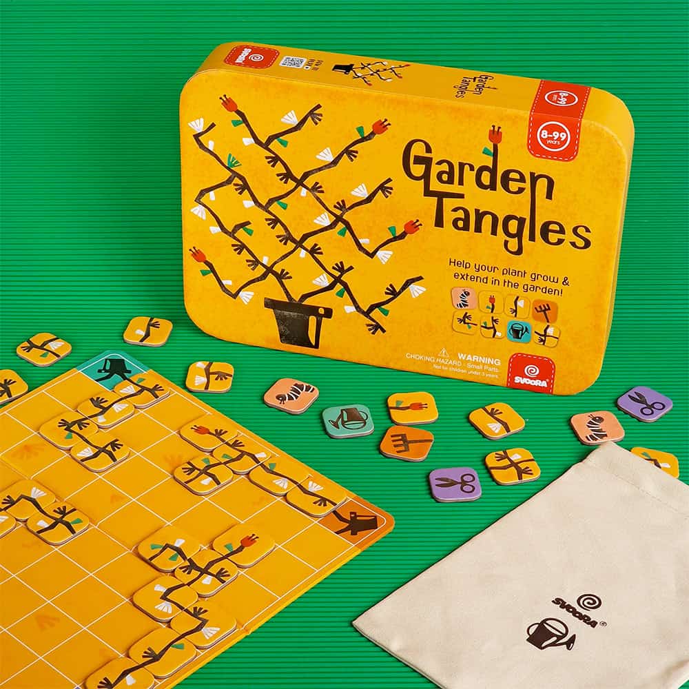 Garden Tangles - The Game of Strategies and Subversions! Immerse yourself in a tangled green world of twigs, rakes and caterpillars with Garden Tangles, a strategic board game for 2-4 players or teams of 2! Choose random branch tiles and strategically place them on the board to help your plant grow more. Use action tiles like rakes and scissors to knock down your opponents' plants, but watch out for flowers blocking your own branches! The player or team with the most connected plants wins the game. Package includes 1 magnetic board, 100 magnetic tiles & 1 cotton case. A fun, fast-paced game of strategy and surprises-perfect for family nights or friendly match-ups! Strengthens critical skills like strategic thinking, problem solving and spatial awareness while reinforcing decision-making and resource management in a fun, imaginative way. Suitable for ages 8 and up.