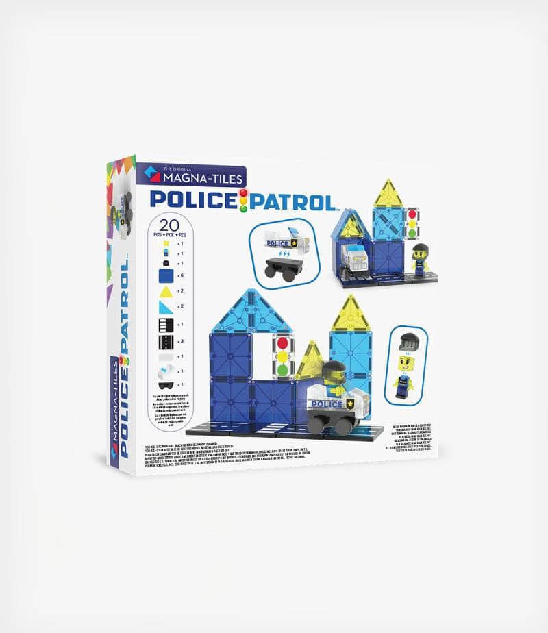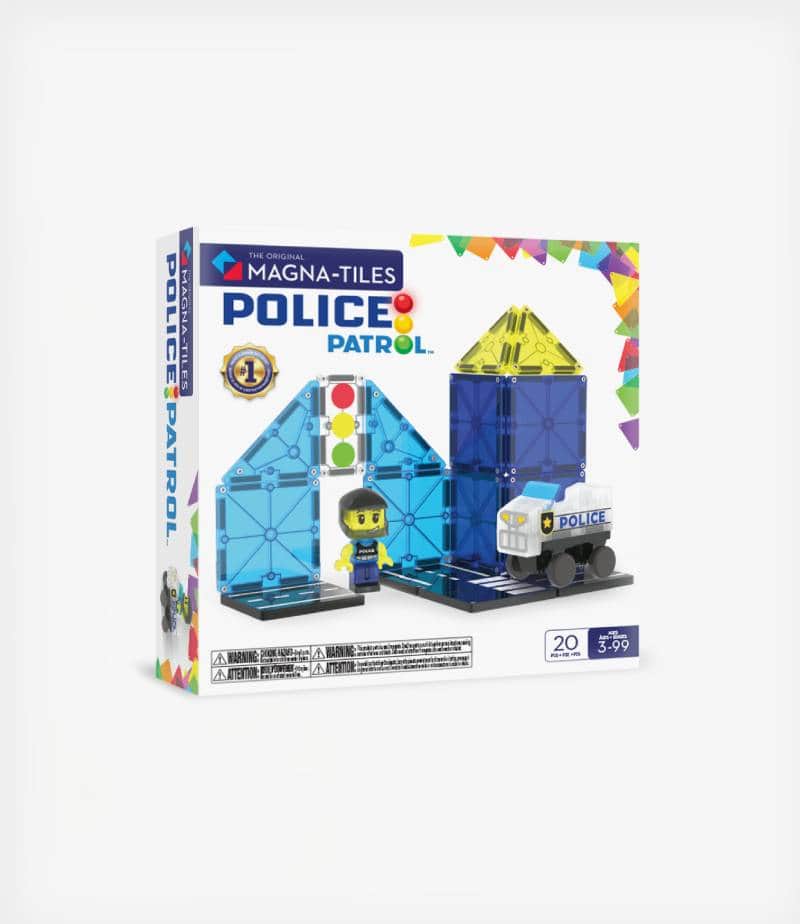 The Police Patrol 20-Piece Set of MAGNA-TILES turns the game into an exciting police adventure! Children create police props...setting up roadblocks, patrolling the city and solving cases with the two police figures and specially decorated tiles.