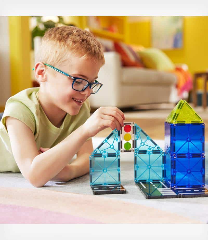 The set includes geometric magnetic tiles of high quality that are joined with ease and stability, without any connecting parts. It is compatible with all sets MAGNA-TILES, enhancing creativity and imaginative role play.