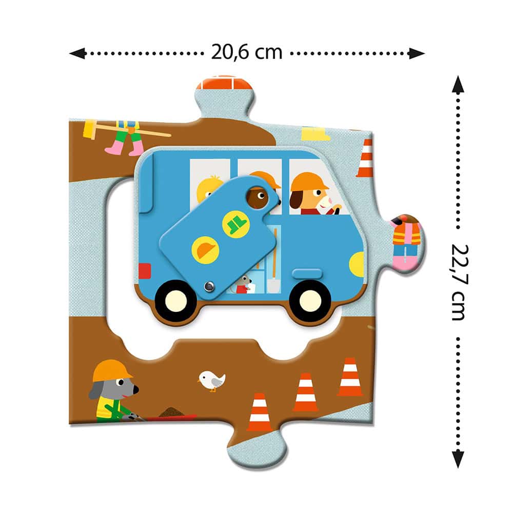 Djeco παζλ γίγας 12+5 τεμαχίων “Κατασκευαστικά οχήματα με κίνηση”