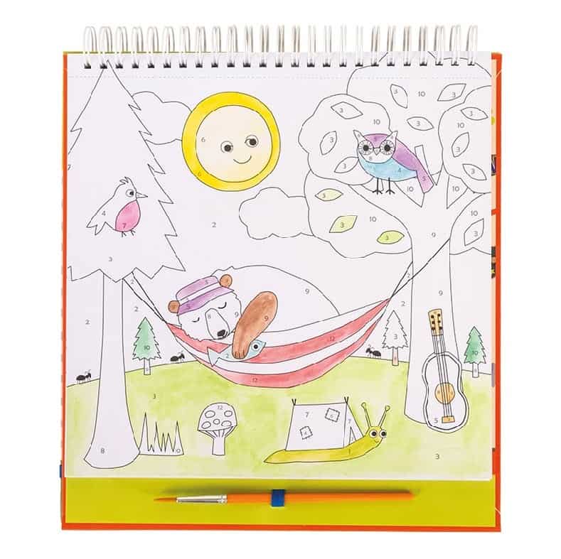 Είναι ένα εξαιρετικό σετ ζωγραφικής και δημιουργίας με όμορφες εικόνες με ζωάκια και άλλα, από την εταιρεία Floss and Rock. Το μπλοκ ζωγραφικής περιλαμβάνει 10 χρώματα ζωγραφικής σε μια παλέτα με σχήμα φύλλου, 10 όμορφες εικόνες και ένα πινέλο. Απλώς προσθέστε μια μικρή ποσότητα νερού στο πινέλο σας, περάστε πάνω από το χρώμα στην παλέτα και ζωγραφίστε την εικόνα με το χρώμα που αντιστοιχεί σε κάθε αριθμό. Πρωτότυποι συνδυασμοί που εξάπτουν την φαντασία των παιδιών και αναπτύσσουν τη δημιουργικότητα τους. Εξαιρετική χειροτεχνία για τα παιδιά που θα τα βοηθήσει να αγαπήσουν την ζωγραφική. Μια καλλιτεχνική διαδικασία, όπου τα παιδιά με τη βοήθεια των χρωμάτων και με την σωστή καθοδήγηση των αριθμών, ζωντανεύουν τις εικονογραφημένες εικόνες.