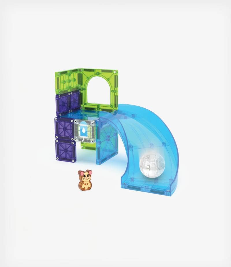 Το Hamster Ball 13-Piece Set της MAGNA-TILES συνδυάζει τη μαγεία της μαγνητικής κατασκευής με την τρυφερότητα ενός μικρού, παιχνιδιάρικου χάμστερ! Τα παιδιά δημιουργούν ένα διαδραστικό περιβάλλον με τσουλήθρα, σκάλα και παράθυρα, ενώ η κυλιόμενη μπάλα με το χάμστερ στο εσωτερικό δίνει ζωή στο παιχνίδι, ενισχύοντας τη φαντασία και την εξερεύνηση.