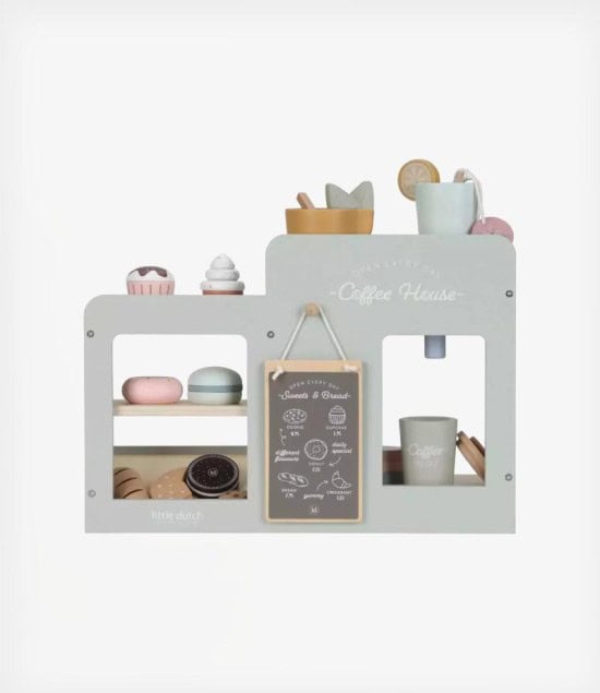 Η ξύλινη παιδική καφετέρια της Little Dutch προσφέρει μια ολοκληρωμένη εμπειρία barista, ιδανική για παιχνίδι ρόλων. Το παιδί μπορεί να πατήσει κουμπιά, να επιλέξει ρυθμίσεις και να τοποθετήσει κάψουλες για έναν ρεαλιστικό και διαδραστικό τρόπο παιχνιδιού.